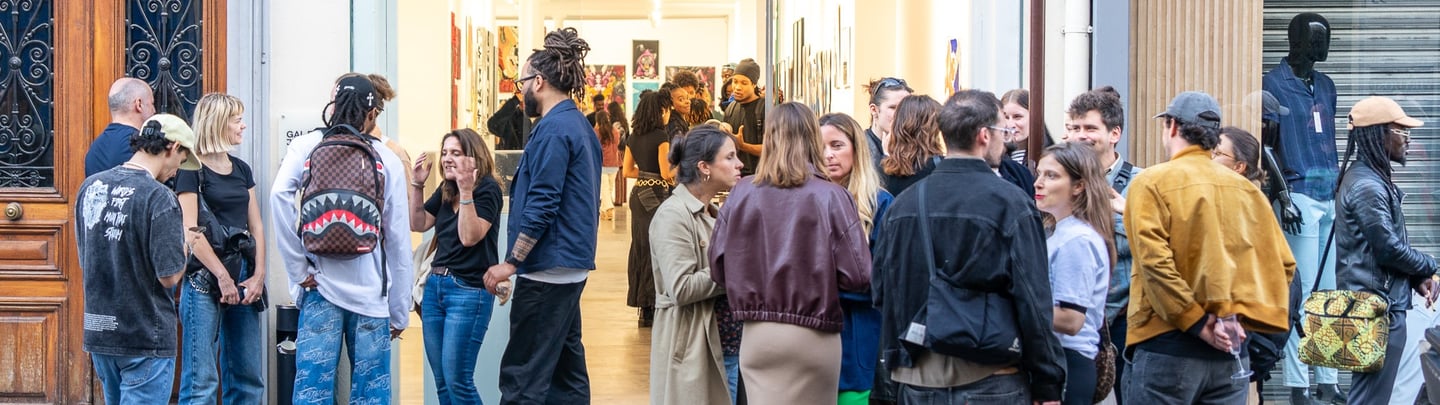 Le programme comprenait deux vernissages — un public et un privé — ainsi que plusieurs talks thématiques. Pour l’occasion, j’ai réalisé une série de huit toiles directement inspirée de mon voyage au Cap-Vert, effectué quelques mois auparavant avec le Cercle des Artistes. Ce séjour a profondément nourri mon regard et ma pratique. À travers cette série, j’ai cherché à immortaliser des scènes de vie quotidiennes, en m’appuyant sur mes propres photographies, utilisées dans mes collages d’impression.